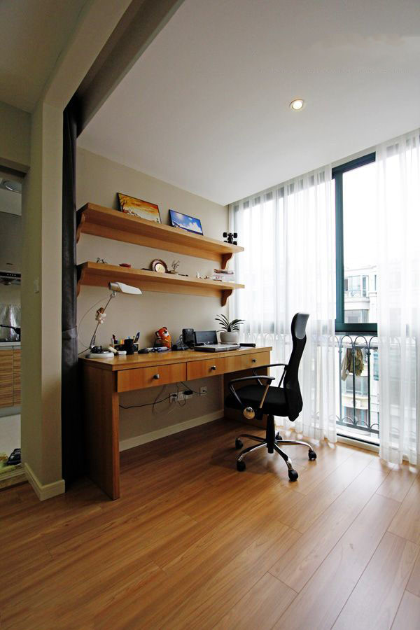 95平現代混搭隱形門+陽臺變書房風格裝修效果